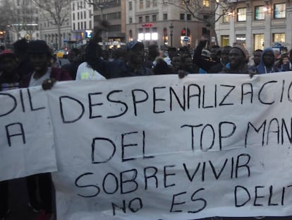 Els manters es manifesten contra la condemna a un venedor que va agredir un urbà