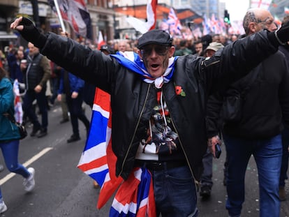 La policía ha establecido una barrera entre los seguidores del líder ultra Tommy Robinson, encarcelado horas antes de la manifestación, y la protesta antifascista convocada a unos metros