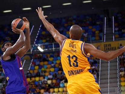 Los azulgrana, fiados a Kuric y Tomic, se desmoronan al final y Hannah culmina el primer triunfo canario en la historia de la Euroliga