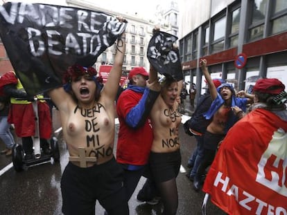Activistas de Femen irrumpen en la marcha convocada por la plataforma Sí a la Vida