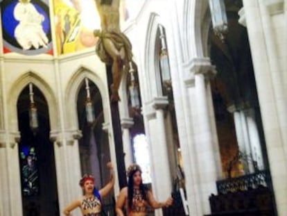 Se habían atado a un crucifijo con el torso desnudo para reivindicar el derecho al aborto