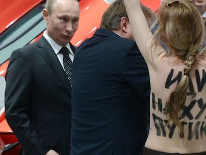 Activistas de la organización Femen han protestado semidesnudas en varias ciudades europeas en defensa de los derechos de las mujeres