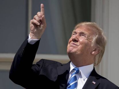 Donald Trump no ha querido perderse el eclipse solar que ha recorrido EE UU de costa a costa y se ha tomado unos minutos para observarlo con algunos de sus colaboradores más cercanos y familia directa desde el balcón de la Casa Blanca.