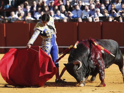 El torero corta las dos orejas de un torete blando y nobilísimo y enloquece a la plaza de la Maestranza