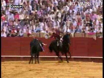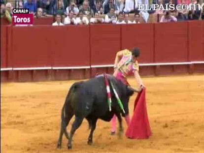 El joven torero sevillano convence con una valiente labor ante un manso de libro. El Cid cortó una oreja tras una actuación cogida con alfileres; Cayetano dio una vuelta al ruedo. <p><a href="http://www.elpais.com/toros/feria-de-abril/"><b>Vídeos de la Feria de Abril</b></a> </p>
