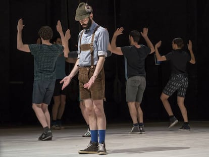 El montaje 'Folk-s' se inspira en una danza folclórica germana y dura el tiempo que el espectador quiera mirar