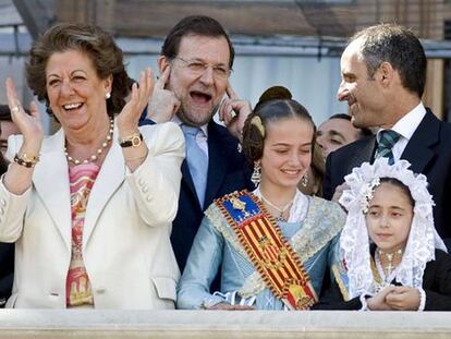 Rajoy y Camps comparten balcón en la 'mascletà'