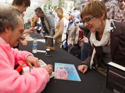 La periodista Rosa Mora recorre Barcelona en esta jornada de Sant Jordi