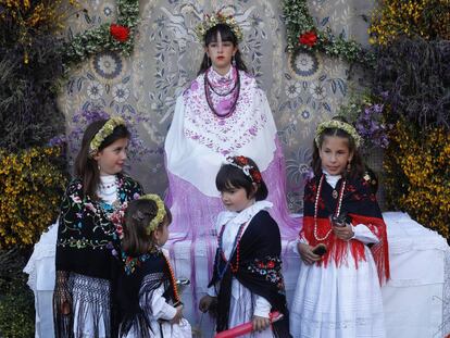 La localidad celebra la fiesta de La Maya, una tradición que 'obliga' a cinco jóvenes a permanecer sin moverse más de dos horas junto a un altar