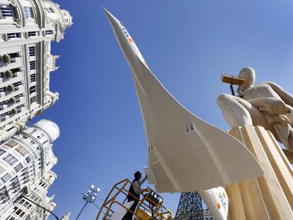 El artesano, figura central de la falla municipal, está en pie y tiene corazón