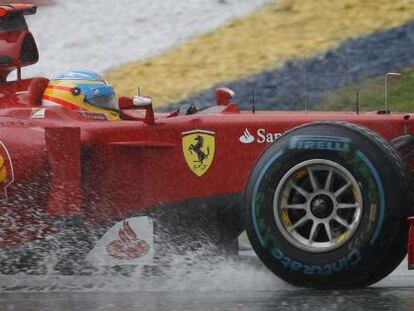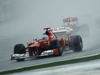 El piloto de Ferrari aprovecha el galimatías causado por una tormenta y un error del mexicano Pérez para apuntarse en el GP de Malasia la primera victoria del curso y colocarse líder del Mundial de F-1