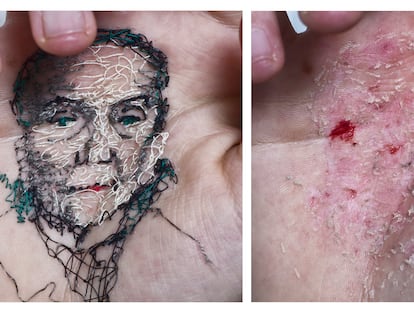 El artista David Catá se cose la memoria de sus abuelas a las manos