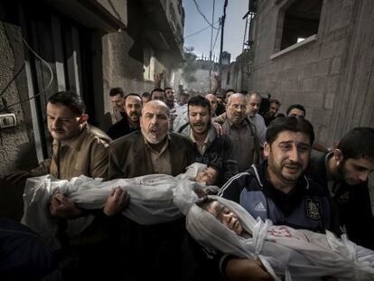 El fotógrafo muestra la desesperación de dos hombres con los cadáveres de sendos niños en brazos. El galardón cumple su 56 edición como el más importante de su clase