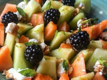 Con todas las frutas de temporada que tenemos a nuestro alcance, sería una pena quedarse en la lechuga y el tomate. Aquí van unas cuantas ideas para integrar el melón, el melocotón o los higos en las ensaladas.