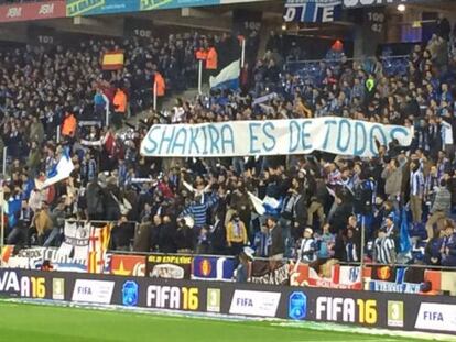 “Shakira es de todos” y “Pau tu pie nos marca el camino” fueron algunos de los carteles en la grada de Cornellà