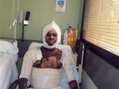 El hospital tenía previsto trasladarle esta mañana en un avión sanitario al hospital de Melilla Patrick fue quemado vivo en Melilla mientras dormía en una chabola de cartón
