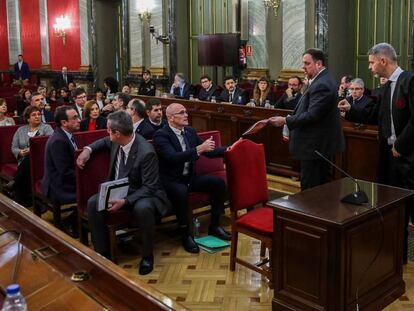 El exvicepresidente de la Generalitat Oriol Junqueras y otros 11 líderes independentistas catalanes se sientan en el banquillo acusados de promover y ejecutar el pulso al Estado que culminó en la consulta secesionista ilegal del 1 de octubre de 2017 y la posterior declaración unilateral de independencia