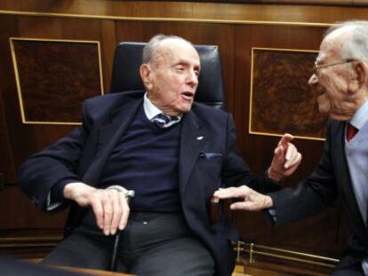 En los actos de aniversario del 23-F, el Rey almuerza en el Congreso con protagonistas supervivientes de aquellas horas: Fraga, Carrillo y Landelino Lavilla, entre otros