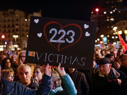 En la manifestación había carteles pidiendo a los Reyes Magos o al 2025 que se lleven la carrera política por delante de Mazón, como el lodo se llevó las vidas de 223 valencianos