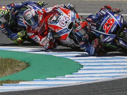 El d’Honda guanya una cursa en què una maniobra de Dovizioso desbanca l’italià, Pedrosa i Lorenzo quan lluitaven pel podi