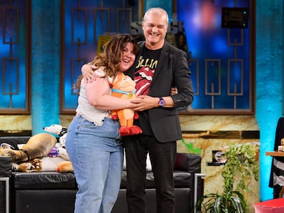 El veterano conductor de la Nochevieja de TVE aprovecha la presentación de la programación navideña del ente público para fundirse en un abrazo con los cómicos