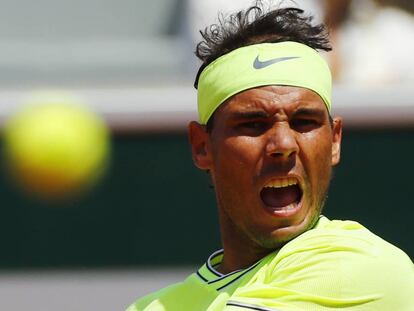 El balear se impone a Federer en un pulso condicionado por el vendaval (6-3, 6-4 y 6-2) y afianza su hegemonía sobre arena para desembarcar en su duodécima final, a la espera de Djokovic o Thiem