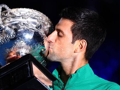 Nole, que se expone a una multa por un roce con el juez de silla, dedica el trofeo a Bryant y al país anfitrión por los incendios, y dice que Thiem jugó mejor. “Cada vez estoy más cerca”, dice el austriaco