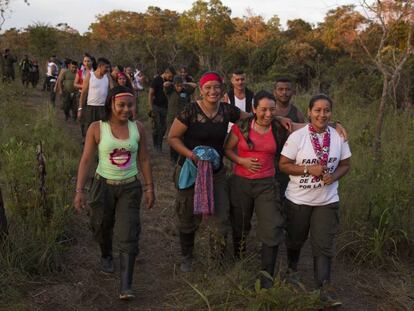 Guerrilleras de las FARC en el campo guerrillero de la jungla de Putumayo (Colombia)