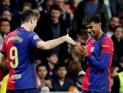 El Barcelona arrolla al Real Madrid en el Bernabéu gracias al doblete de Lewandowski y los goles de Yamal y Raphinha | Íñigo Martínez, tras el partido: “Queda muchísimo, pero este es el camino a seguir”