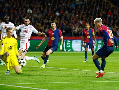 Los azulgrana se reencuentran con su fútbol ambicioso e intenso y acaban con la condición de invicto del Brest con dos goles de Lewandowski y otro de Olmo en un estadio de Montjuïc sin grada de animación