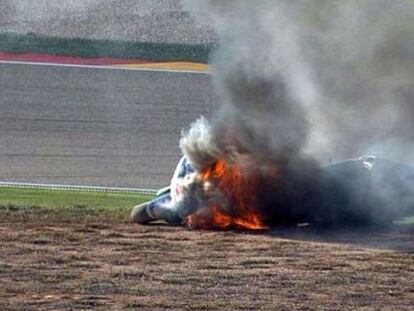 La Ducati del piloto español se incendia durante los entrenamientos libres del GP de Aragón
