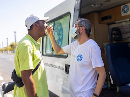 Una unidad móvil de Médicos del Mundo peina la capital para detectar una enfermedad asintomática que afecta al 3% de quienes viven en la calle y al 0,22% de la población general