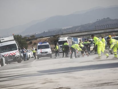 El accidente causa retenciones de hasta 11,5 kilómetros en Esparreguera El camión ha vertido 5.000 litros de gasoil