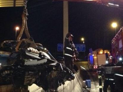 El vehículo sufre un choque por alcance con una moto antes de precipitarse a las vías Las líneas C2 y C7 entre Coslada y San Fernando han estado cortadas cuatro horas
