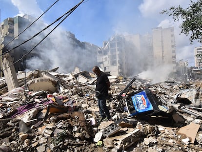 Dahiye, el antes vibrante suburbio chií de la capital libanesa, luce casi vacío tras la huida de miles de vecinos. Los ataques aéreos, convertidos en diarios, dejan cráteres, edificios derrumbados y señales en inmuebles y aceras cercanas