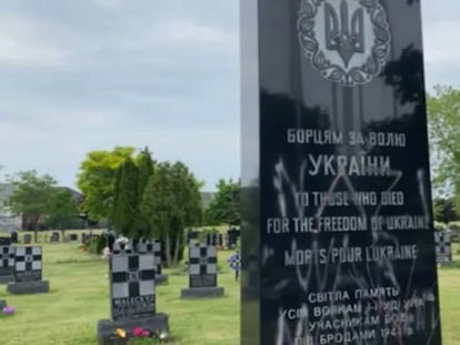 La pintada apareció sobre un cenotafio a soldados ucranios que combatieron del lado alemán durante la Segunda Guerra Mundial