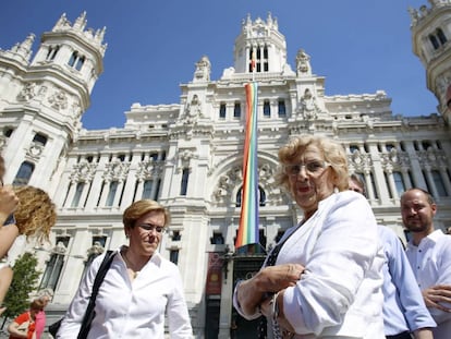 El Ayuntamiento de la capital, la Comunidad, Metro de Madrid y varios consistorios más exhiben la bandera arco iris para mostrar su apoyo al Día del Orgullo LGTB