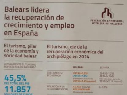 La patronal publica un anunci a la premsa amb el títol 'Balears lidera la recuperació de creixement i treball a Espanya'