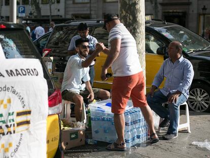 Els taxistes mantenen una acampada al centre de Barcelona des de divendres