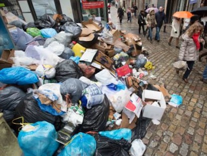 Una montaña de basuras cubre la ciudad tras 13 días de huelga