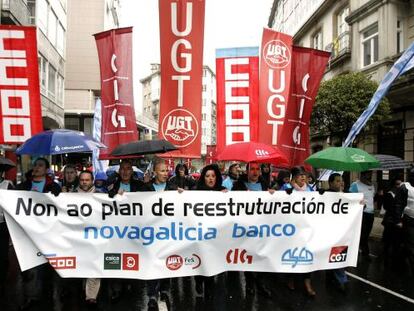 Las centrales convocan paros en Bankia, Novagalicia y Banco de Valencia el 6 de febrero La protesta quiere mostrar el rechazo por los ajustes de plantilla y el cierres de oficinas