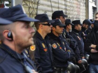 Medio millar de jóvenes recorren las calles del centro para apoyar el paro general Policías antidisturbios acompañan la protesta improvisada de las diez de la mañana al mediodía