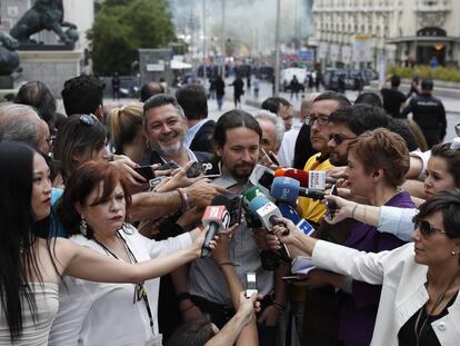 Pablo Iglesias recibe el impacto de un huevo en la manifestación de taxistas