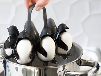 Este cocedor de huevos de diseño minimalista, con más de 4.000 valoraciones en Amazon y una nota media elevada, dispone de un mango frío al contacto con la piel