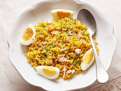 Proviene de la dieta ayurvédica y fue el desayuno de moda en Reino Unido en la época victoriana. La versión original lleva abadejo ahumado, pero puedes hacerlo con otros pescados