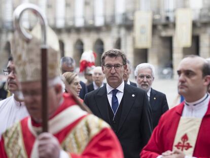 En una ofrenda en la que Feijóo actúa como delegado regio, Julián Barrio pide a los gobernantes un "diálogo sereno" que vaya "más allá del pluralismo irreconciliable"