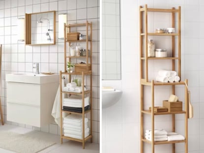 Se trata de una estantería de bambú, resistente y bonita, que va genial para baños pequeños