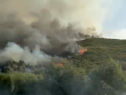 Durante el trayecto, los pasajeros grabaron imágenes de los incendios en Vilaza y Albarellos, que alcanzaban el borde de la carretera A62