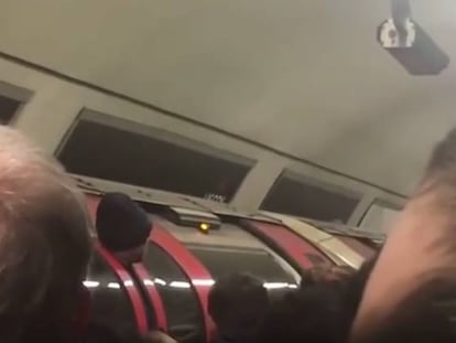 Un pasajero quedó retenido en esa posición ante el asombro del resto de viajeros