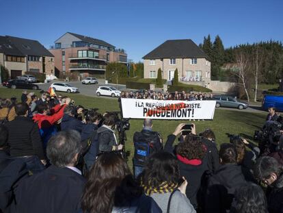 La líder de Ciudadanos en Cataluña realizó una breve intervención de 10 minutos ante la casa del 'expresident'